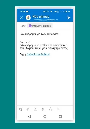 Ο QR code για αποστολή Email, ανοίγει την εφαρμογή αλληλογραφίας, με το email σας στο πεδίο παραλήπτη.